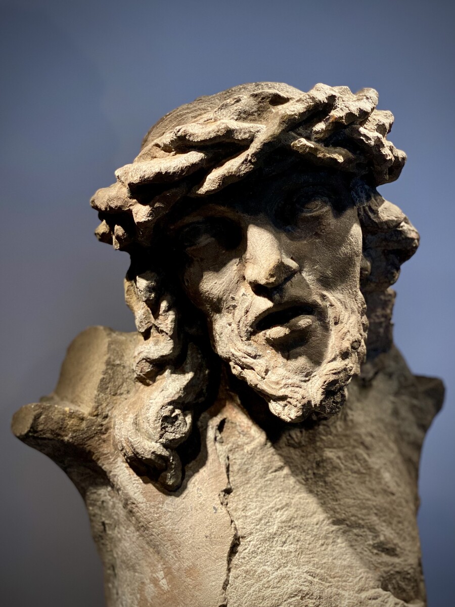 Very expressive stone carved Corpus Christi with a good patina from age Franconia , South Germany mid 16th. century. Professional mounted on a custom black metal base . Corpus 90 cm. height , total 110 cm.